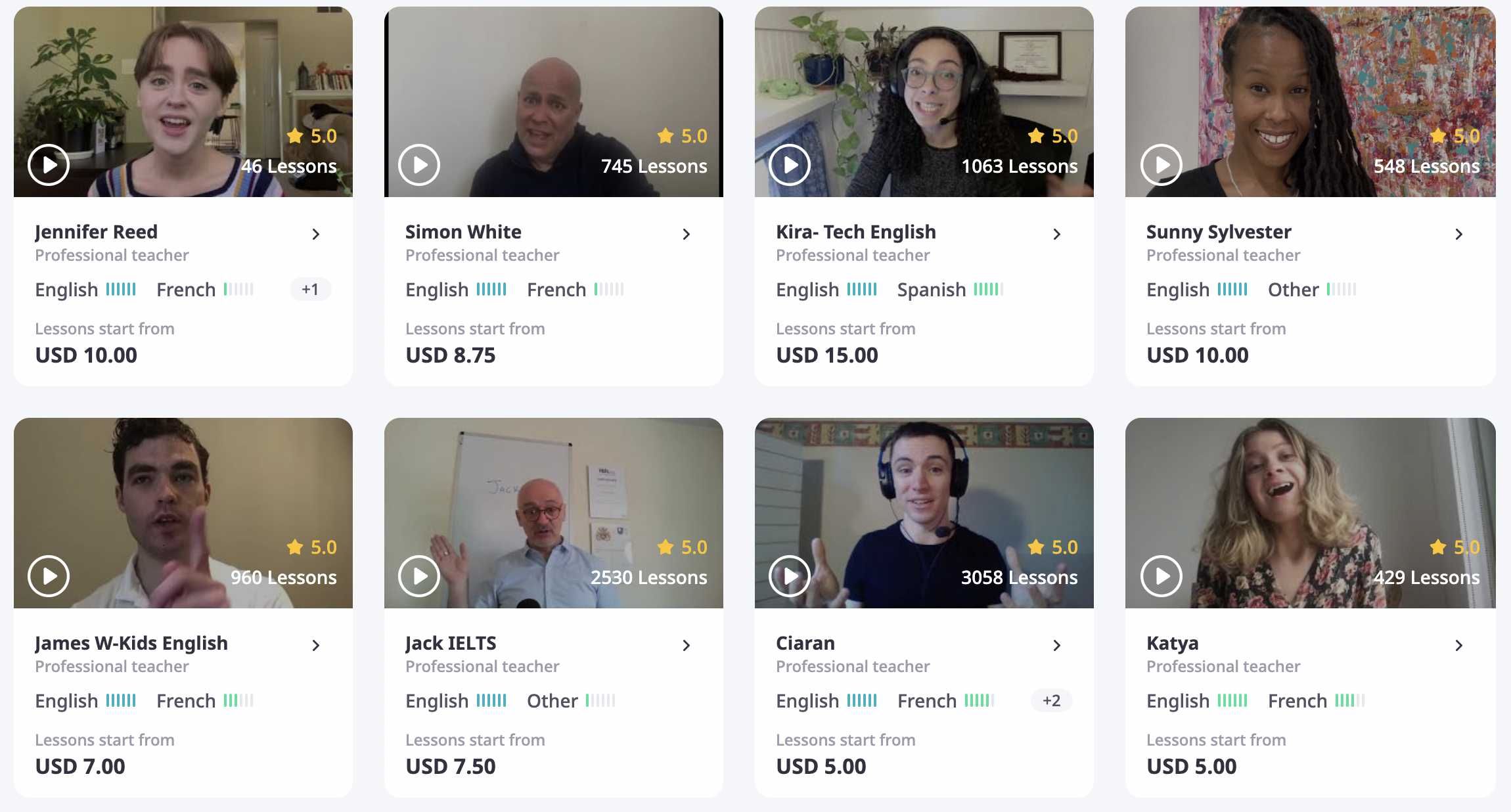 Každý učitel má v italki krátké úvodní video, kde se krátce představí a řekne něco o své výuce. Vybírat tedy můžete i na základě osobních sympatií. Podle dalších kritérií ale samozřejmě také: