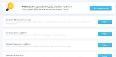 Pozn.: Pokud si zvolíte vyšší úroveň a přece jen chcete nakouknout do našeho Kurzu pro začátečníky, najdete ho v záložce samostudium v sekci obecné.