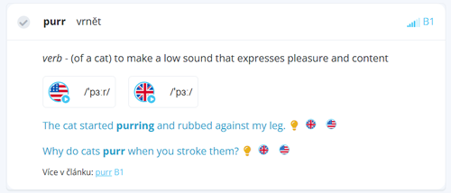 Nahrávky slovíček a vět je možné si zpomalit. První přehrání nahrávky je vždy v plné rychlosti. Pokud na ikonku pro přehrání kliknete znovu, přehraje se audio soubor pomaleji. Třetí přehrání je zase v běžné rychlosti.